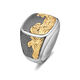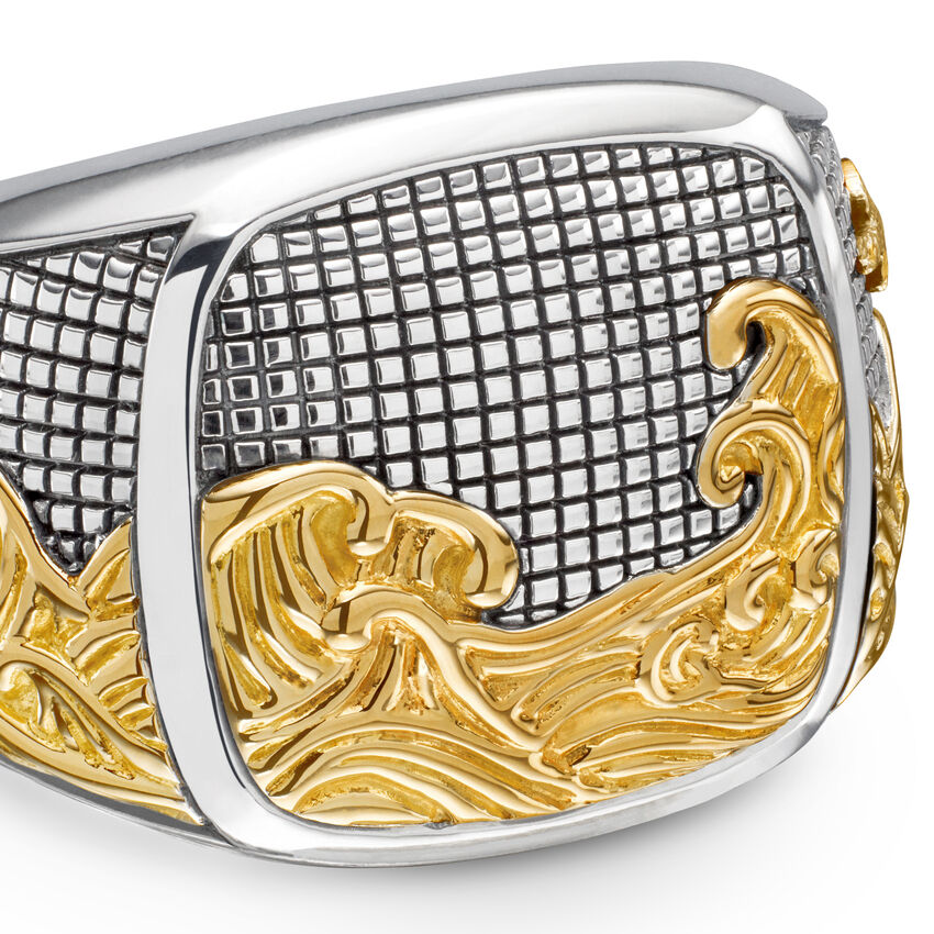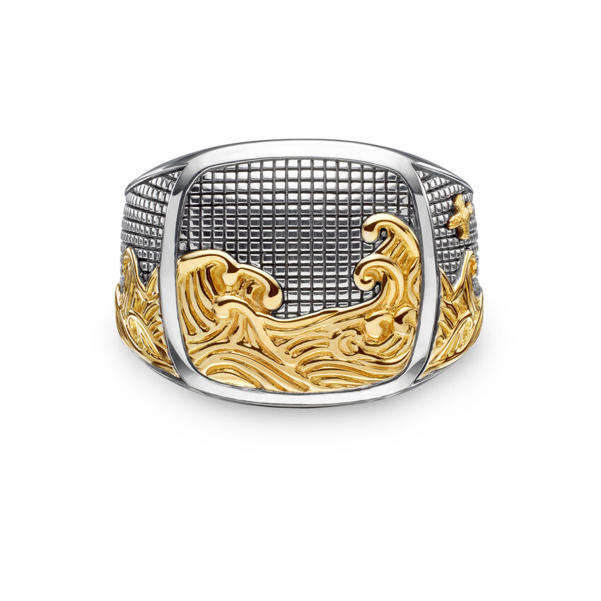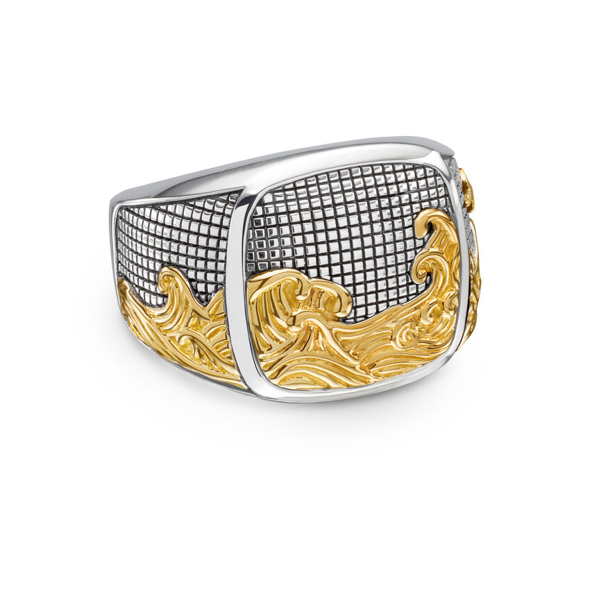 Waves Signet Ring in Sterling Silver with 18K Yellow Gold, 18.8mm