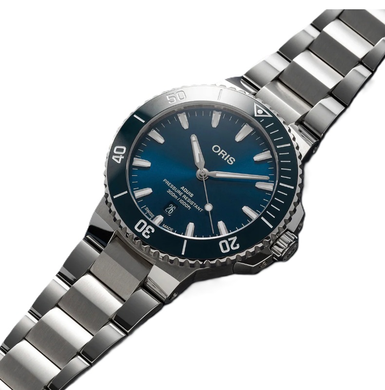 Multi-piece stainless steel case, ceramic minutes scale top ring. Sapphire, domed on both sides, anti-reflective coating inside. Stainless steel, screwed, see-through mineral glass.