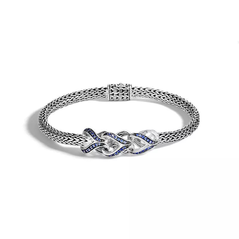 WOMEN’S Asli Classic Chain Link Silver Extra-Small Bracelet 5mm with Pusher Clasp with Blue Sapphire, Size UM