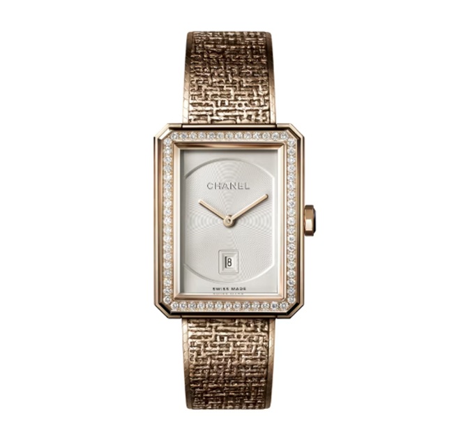 18K BEIGE GOLD bracelet with tweed motif and double-folding buckle