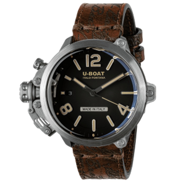 Sellita SW 200 Swiss automatic mechanical, personalized to U-BOAT specifications. Frequency: 28,800 vibrations per hour. Power reserve: 41 hours. 26 jewels. Skeletonized rotor.