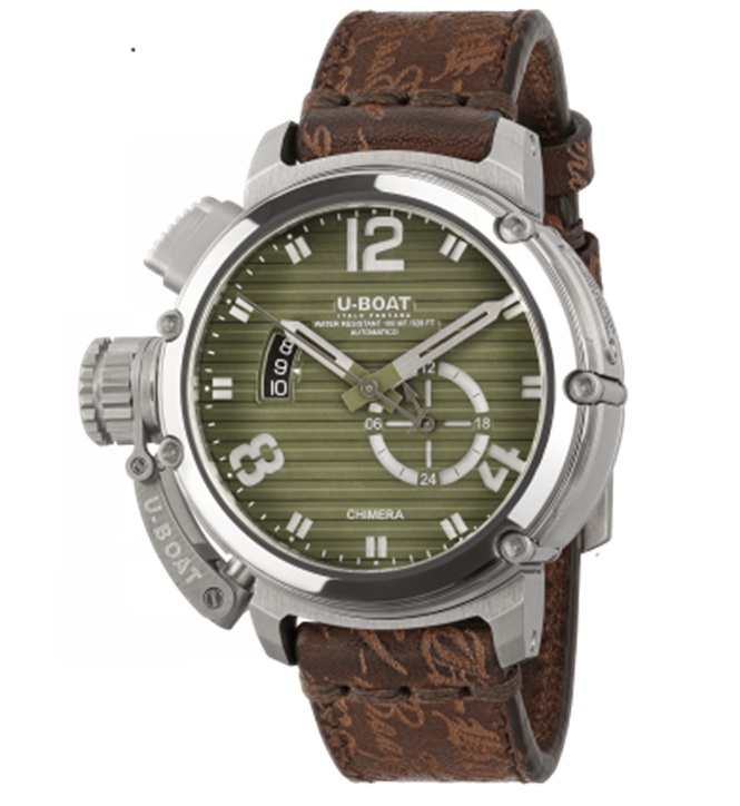 Swiss automatic mechanical ETA 2824 Top Soigné, elaborated and modified according to U-BOAT specifications. Frequency 28,800 alternations/hour (4 Hz). Power reserve 38 hours. 25 jewels. U-BOAT rotor in brass and tungsten, perlage processing and rhodium-plated. Screwed bridges.
