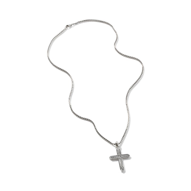 Classic Chain Sterling Silver Men’s Box Chain Cross Necklace 22″