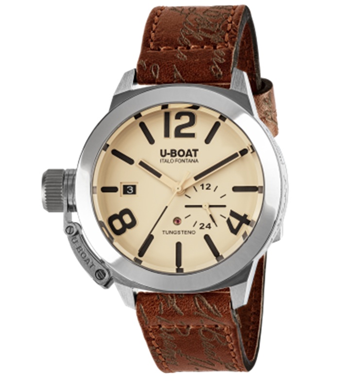 Swiss automatic winding with U-BOAT technical specifications. Frequency 28,800 vibrations / hour power reserve 41 hours. 26 rubies. Custom skeletonized rotor.