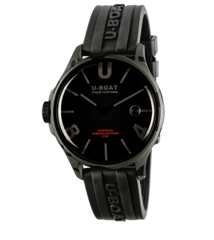 ultra-resistant vulcanised rubber strap, black in color with the embossed Maison logo. Width: 20/18 mm Strap: ref. 8800/Z Steel buckle with camouflage treatment. Buckle: ref. 9682