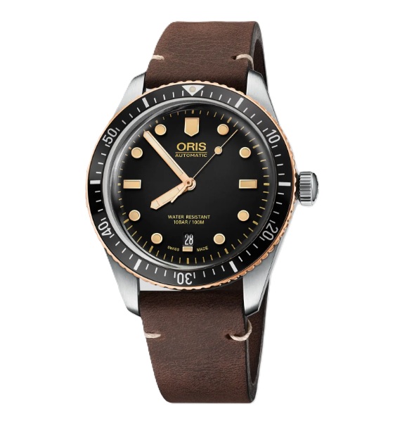 Multi-piece stainless steel/bronze case, minutes scale top ring. Sapphire, domed on both sides, anti-reflective coating inside. Stainless steel, special engravings, screwed.