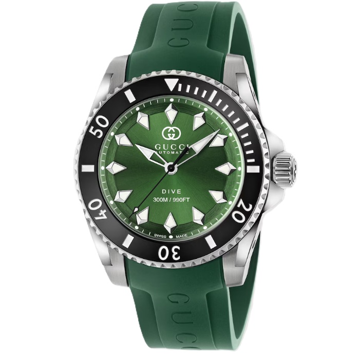 40mm stainless steel case, green dial, ceramic bezel and rubber bracelet