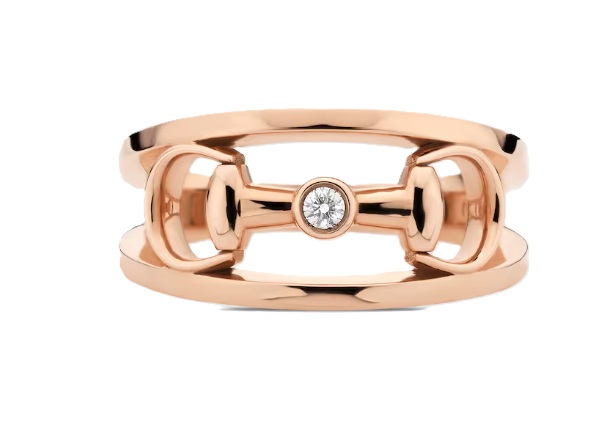 Stealth code 796191J85405702 18k rose gold 1 white diamonds, approximately 0.029 carats Horsebit motif Width: 0.4″ Made in Italy