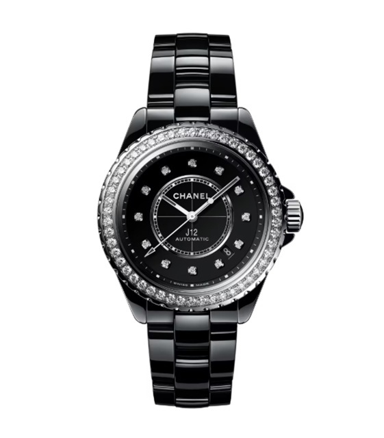 Black-lacquered dial set with 12 diamond indicators (~0.09 carat)