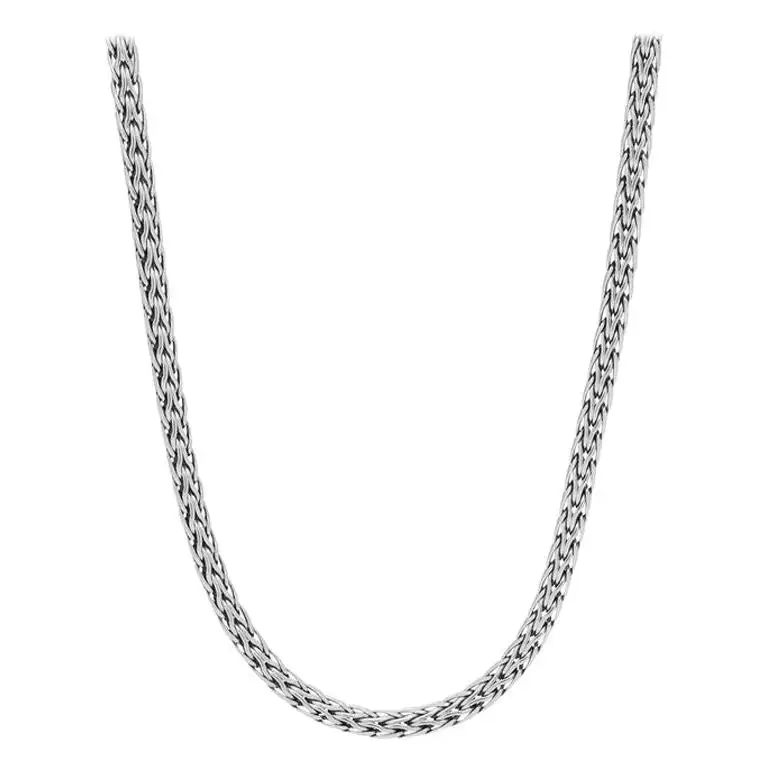 This simple John Hardy Sterling Silver strand Necklace features the classic chain design with a decorative design surrounding the clasp. The Band Width is 3.2mm. The Length is 16 inches. The Weight is 19.5g. This designer jewelry is shipped with a John Hardy Pouch.