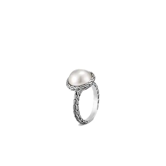 Women’s Classic Chain Silver Small Ring with 11.5-12mm Mabe Fresh Water Pearl, Size 7