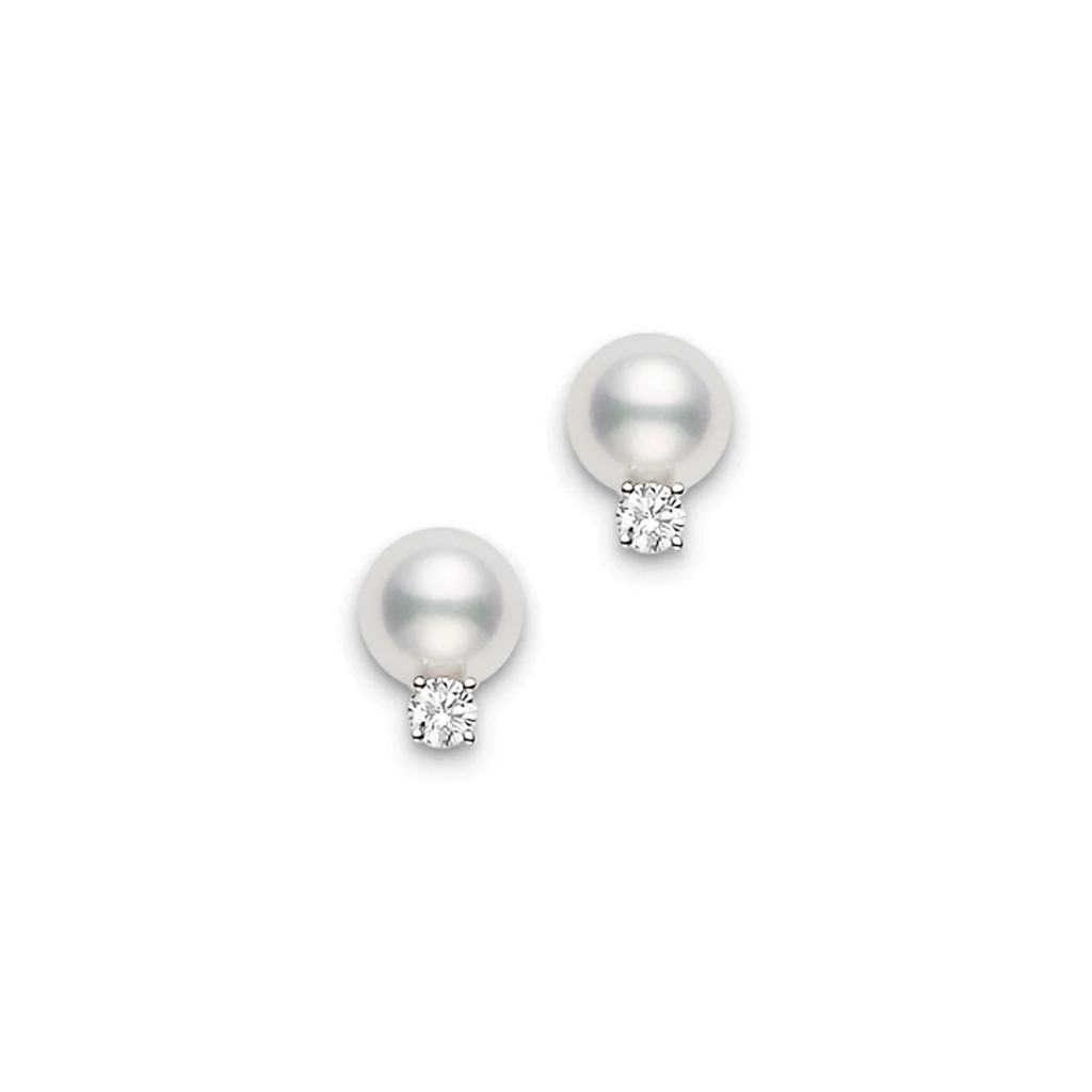 18K White Gold 7-7.5mm Akoya Studs With Diamonds.