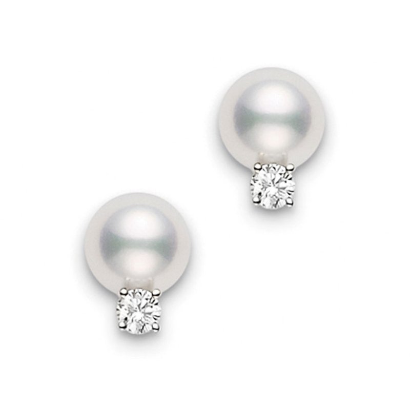 Mikimoto Pearl Studs with Diamonds 6-6.5mm A+ D0.06ct. 18KT Yellow Gold.