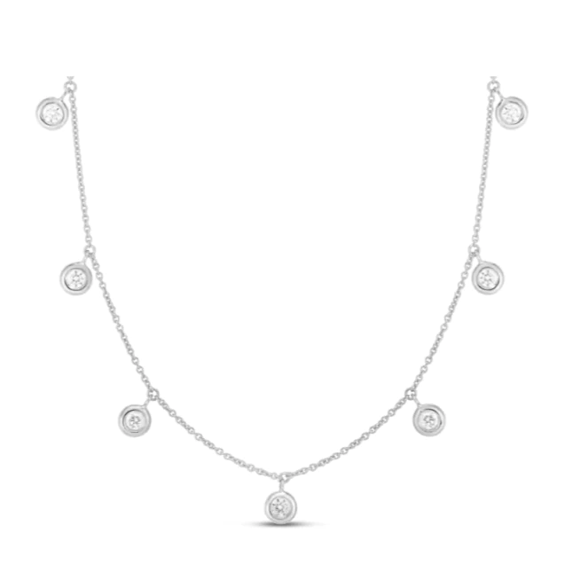 18k White Gold & Diamond Seven Drop Station Necklace.