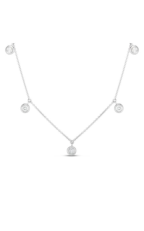 Approx. 0.24 TCW Diamond, Five Bezel Set Diamonds, Approx. 17″ Length Chain, White Gold Finish.