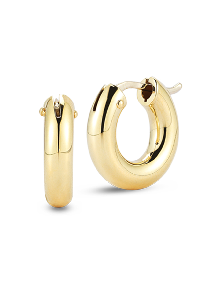 15mm, Small, Round Shape, Hinged Snap Post, 18K Yellow Gold Finish.