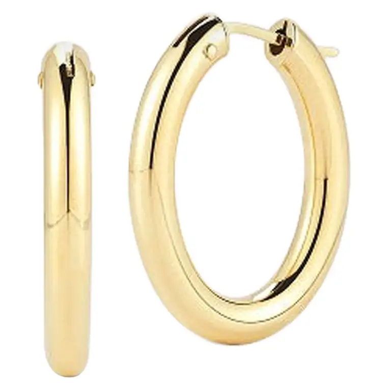 18K Yellow Designer Gold Medium Oval Hoop Earrings.