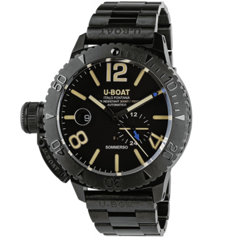 Sellita SW 200 swiss automatic mechanical, personalized to U-BOAT specifications. Frequency: 28,800 vibrations per hour, 4 Hz. Power reserve: 41 hours. 26 jewels. Skeletonized rotor.