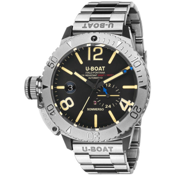 Swiss automatic mechanical, personalized to U-BOAT specifications. Frequency: 28,800 vibrations per hour. Power reserve: 41 hours. 26 jewels. Skeletonized rotor.