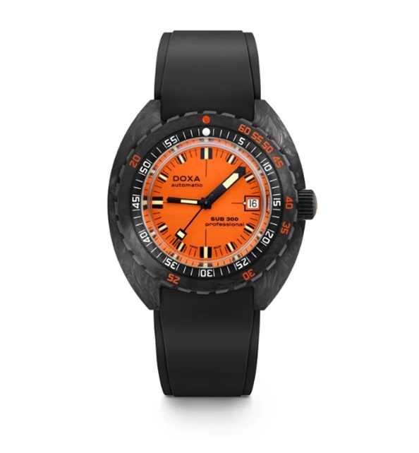 FKM rubber strap, folding clasp, black PVD-coated, with ratcheting wetsuit extension