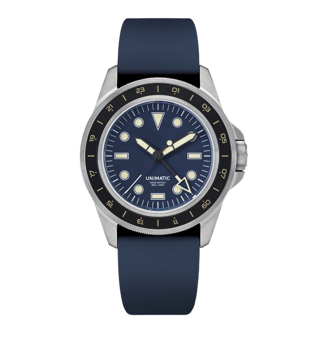 Comes on a vintage navy tapered quick-release two-piece TPU strap
