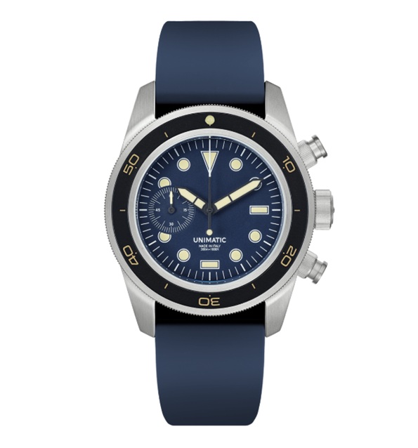 Comes on a vintage navy tapered quick-release two-piece TPU strap