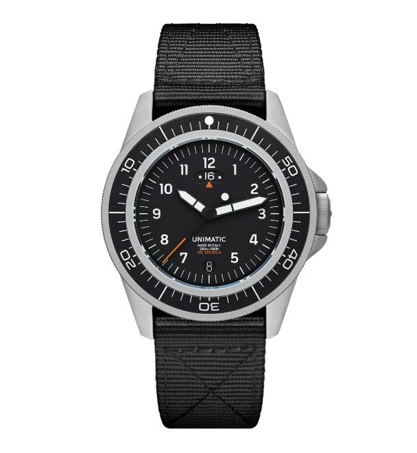Timing accuracy is guaranteed by the Quartz Swiss Made Ronda 515.24D movement with date and GMT function, fitted with a Made in Italy TPU anti-shock system. It comes on a black nylon keeper two-piece strap with stainless steel sandblasted hardware signed UNIMATIC, that fits in the 22 mm lugs.